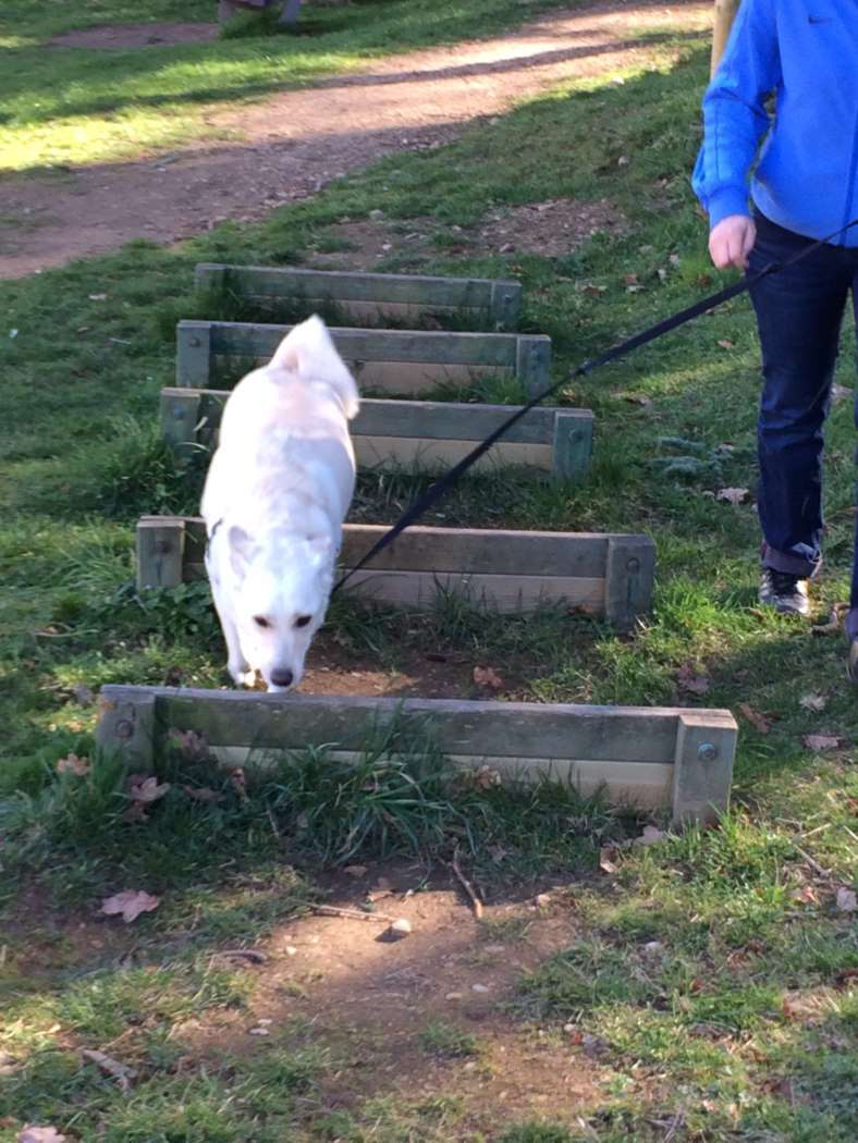 Effectivement, les participants canins et humains s’activent physiquement en marchant et en jouant, en sautant, en rampant au gré des différents éléments rencontrés.
